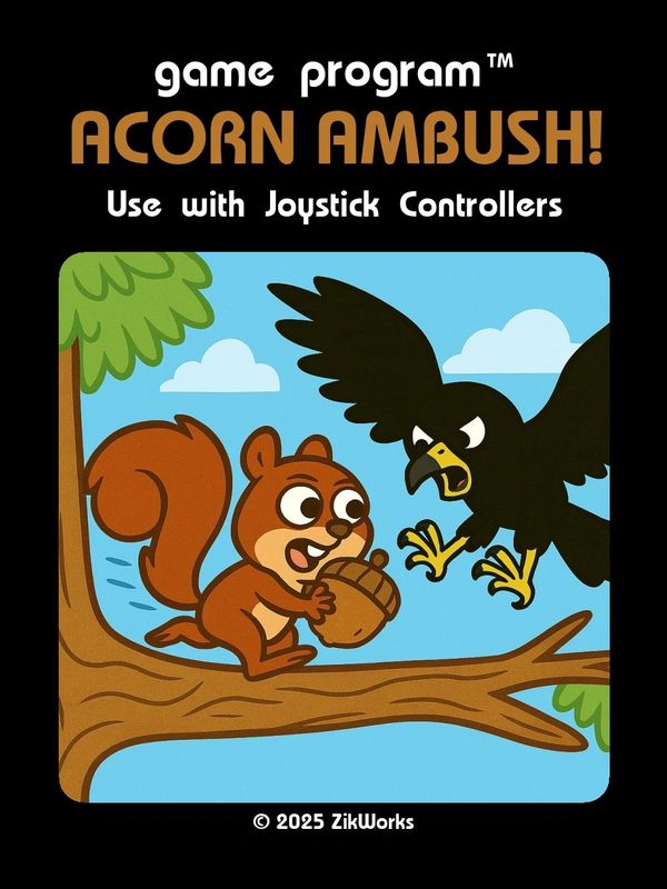 Winter is coming! Help Squirrelly D and Squirrelly Deedee collect acorns and return them to the nest. But beware of Harry Hawk and Sally Spider! For 1 or 2 players.